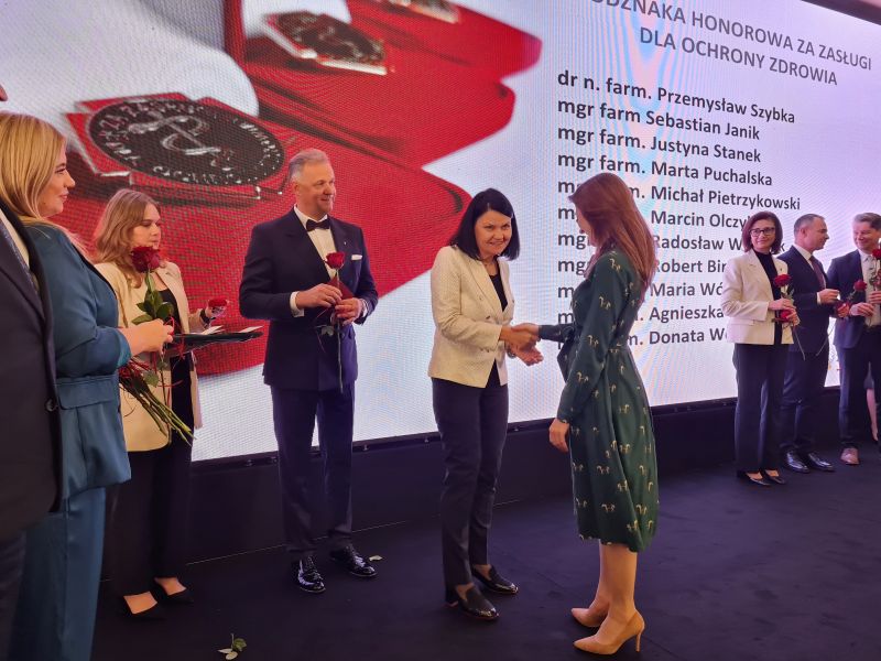 Delegacja Wielkopolskiej Okręgowej Izby Aptekarskiej oraz poznańskich studentów farmacji wzięła udział w uroczystych obchodach Ogólnopolskiego Dnia Farmaceuty w Warszawie, które Naczelna Izba Aptekarska zorganizowała w hotelu Novotel Warszawa Airport. Podniosłym momentem było wręczenie odznaczeń. Medal im. Profesora Bronisława Koskowskiego, przyznawany przez Naczelną Radę Aptekarską za zasługi dla chwały, pożytku i rozwoju aptekarstwa, wręczono między innymi: dr hab. n. farm. Magdalenie Waszyk-Nowaczyk z Katedry i Zakładu Technologii Postaci Leku Uniwersytetu Medycznego Im. Karola Marcinkowskiego w Poznaniu, kierującej Pracownią Farmacji Praktycznej i Opieki Farmaceutycznej, dr. hab. Tomaszowi Zaprutko, adiunktowi w Katedrze i Zakładzie Farmakoekonomiki i Farmacji Społecznej UMP oraz mgr. farm. Mateuszowi Szamałkowi, prezesowi Wielkopolskiej Okręgowej Rady Aptekarskiej. Członkowie Wlkp. OIA uhonorowani tym prestiżowym odznaczeniem wnieśli istotny wkład w budowanie pozytywnego wizerunku farmaceuty i samorządu zawodowego, a ich wieloletnia działalność sprzyja integracji środowiska aptekarskiego w Wielkopolsce. Wśród wyróżnionych była również mgr farm. Marta Puchalska, kierownik Apteki Szpitalnej Ginekologiczno- Położniczego Szpitala Klinicznego Uniwersytetu Medycznego w Poznaniu, która odebrała Odznakę Honorową Ministra Zdrowia „ZA ZASŁUGI DLA OCHRONY ZDROWIA”. Ponadto na wniosek Wlkp. ORA wyróżnieniem „Mecenas Samorządu Zawodu Farmaceuty”, które przyznawane jest przez NRA osobom szczególnie zasłużonym dla rozwoju samorządu aptekarskiego, uhonorowany został mgr inż. Dariusz Łukaszyński z Aesculap Chifa w Nowym Tomyślu, od wielu lat wspierający farmację szpitalną w Wielkopolsce, autor wielu artykułów w czasopiśmie Wlkp. OIA „Farmacja Wielkopolska”.