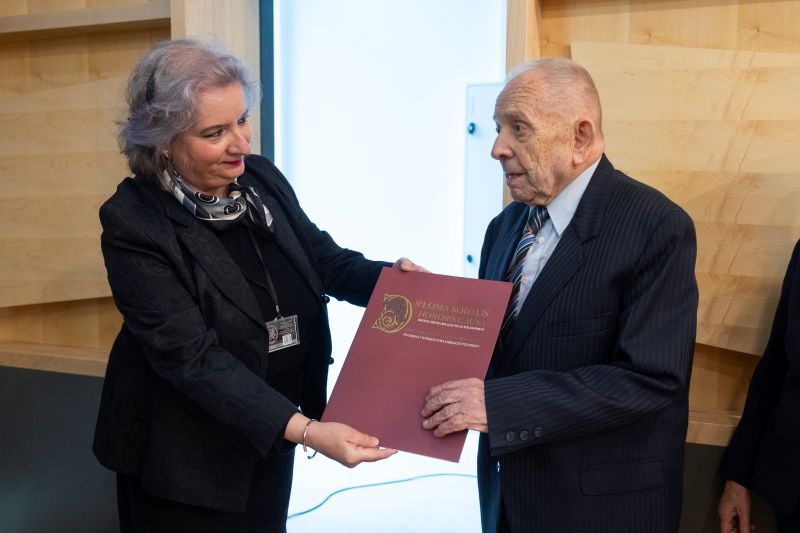 Wspólne świętowanie kontynuowaliśmy w nowoczesnych wnętrzach Collegium Pharmaceuticum przy ul. Rokietnickiej w Poznaniu. Wśród gości spotkania w Sali im. Profesora Jana Pawlaczyka byli między innymi: prorektor ds. promocji i organizacji Uniwersytetu Medycznego im. Karola Marcinkowskiego prof. dr hab. Justyna Gornowicz-Porowska, reprezentująca JM Rektora UMP, wielkopolski wojewódzki inspektor farmaceutyczny dr n. farm. Grzegorz Pakulski i wiceprezes Naczelnej Rady Aptekarskiej dr Alina Górecka. Podniosłym momentem pierwszej części spotkania było wręczenie dyplomu Członka Honorowego PTFarm prof. AM dr. hab. Dzierżykrajowi Dionizemu SKWARSKIEMU, który niedawno ukończył 98 lat. W programie wydarzenia znalazły się trzy wykłady. Prof. dr hab. Lucjusz Zaprutko, były wieloletni kierownik Katedry i Zakładu Chemii Organicznej WF UMP, oczarował słuchaczy wykładem pod tytułem „Czekolada jest dobra na wszystko...", w którym przypomniał o dobroczynnym wpływie czekolady, przede wszystkim gorzkiej (zawierająca co najmniej wartością 70% kakao), na organizm człowieka. Następnie mgr farm. Mateusz Szamałek omówił temat „Wiele twarzy farmacji” (vide cover story najnowszego numeru „Farmacji Wielkopolskiej”), a dr n. farm. Stefan Piechocki, kustosz Muzeum Farmacji Wlkp. OIA, przedstawił „Nowe artefakty w Muzeum Farmacji”. Obchody zakończyło inspirujące spotkanie przy kawie i czekoladowej fontannie.