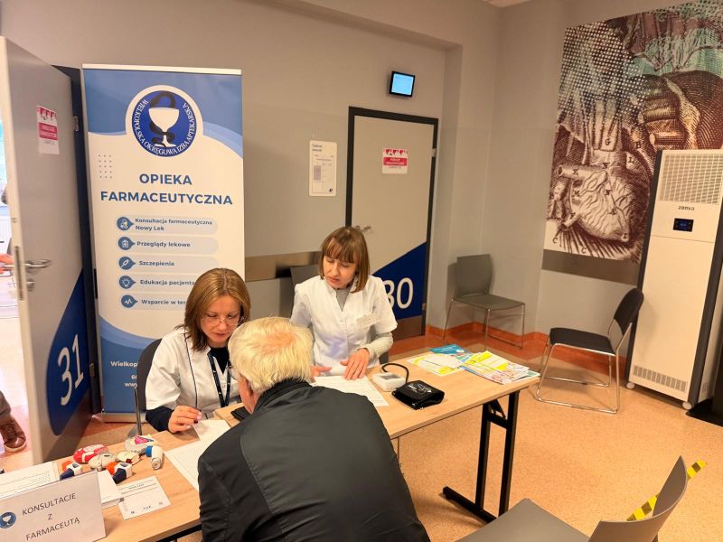 Reprezentacja farmaceutów z Komisji Opieki Farmaceutycznej Wlkp. OIA wzięła udział w kolejnej miejskiej akcji prozdrowotnej, tym razem w ramach cyklu „Senioralni. Poznań" w Centrum Inicjatyw Senioralnych. Wydarzenie poświęcone było profilaktyce i leczeniu udaru, a seniorzy mogli skorzystać z indywidualnych konsultacji. Farmaceuci regularnie pojawiają się w zróżnicowanych akcjach organizowanych przez instytucje w przestrzeni publicznej, budując zaufanie i wizerunek naszego zawodu.